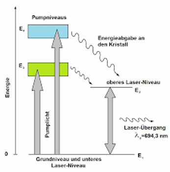 Ein solcher Laser heißt 4 - Niveau - Laser. Der Rubinlaser ist ein 3 - Niveau Laser (die mehrfachen Pumpniveaus werden nur einmal gezählt).